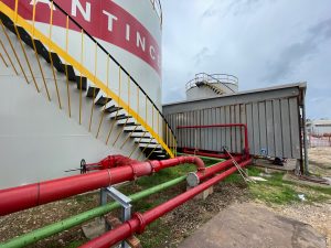 L’intervento ha incluso le attività di verifica e certificazione strutturale, affiancate dalla progettazione di specifici interventi di riparazione e rinforzo strutturale, finalizzati al miglioramento delle prestazioni e dei livelli di sicurezza. A completamento delle attività, è stata prevista la completa verniciatura protettiva dei serbatoi e delle strutture accessorie, comprese scale e parapetti, per garantire durabilità, protezione dalla corrosione e continuità operativa nel tempo.